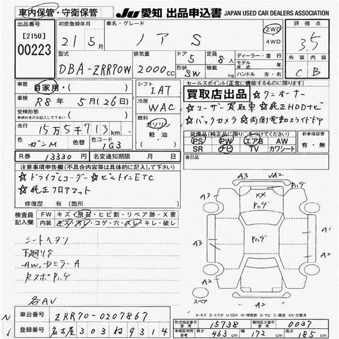 Toyota NOAH с аукциона Японии JU Aichi лот № 223