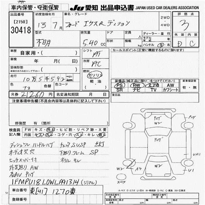 Ford EXPEDITION с аукциона Японии JU Aichi лот № 30418