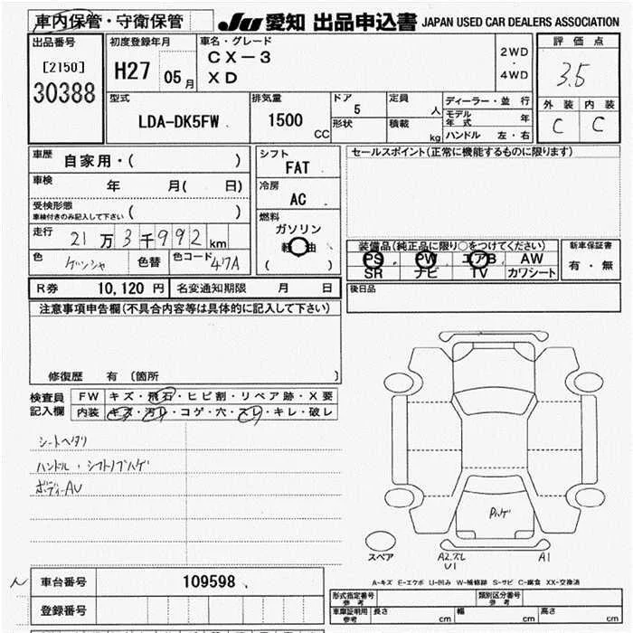 Mazda CX-3 с аукциона Японии JU Aichi лот № 30388