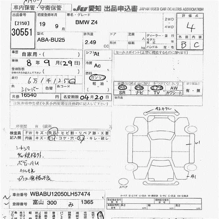BMW Z4 с аукциона Японии JU Aichi лот № 30551