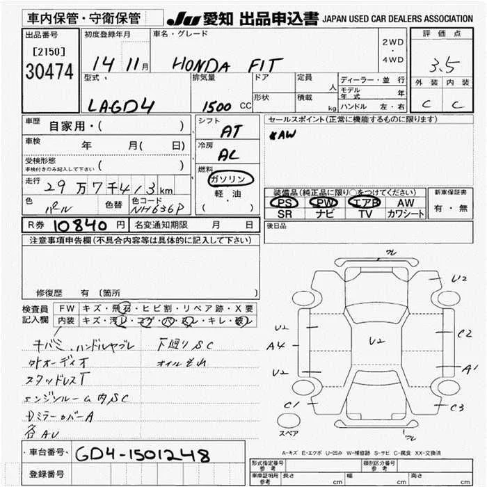Honda FIT с аукциона Японии JU Aichi лот № 30474
