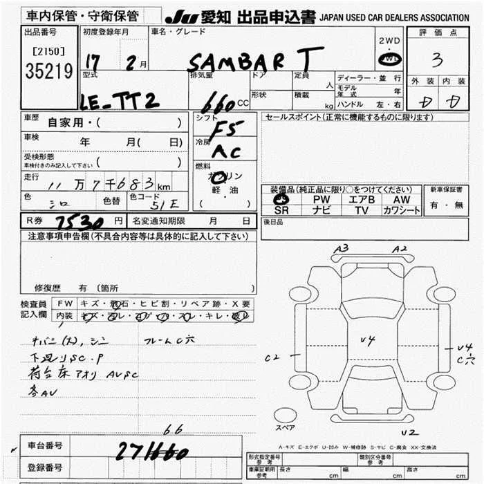 Subaru SAMBAR с аукциона Японии JU Aichi лот № 35219