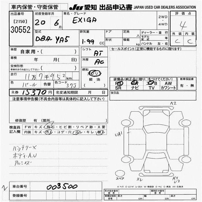Subaru EXIGA с аукциона Японии JU Aichi лот № 30552