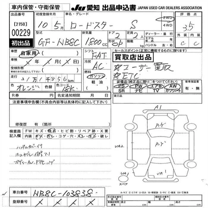 Mazda ROADSTER с аукциона Японии JU Aichi лот № 229