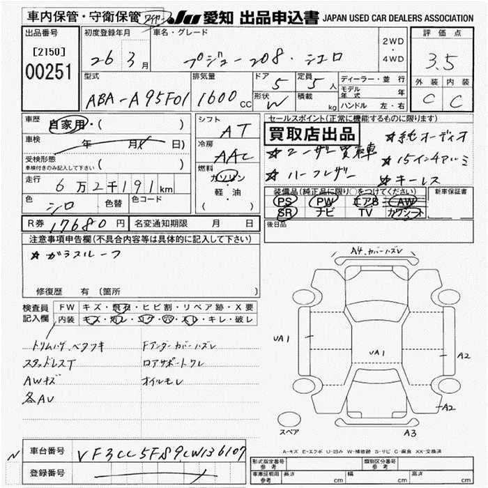 Peugeot 208 с аукциона Японии JU Aichi лот № 251