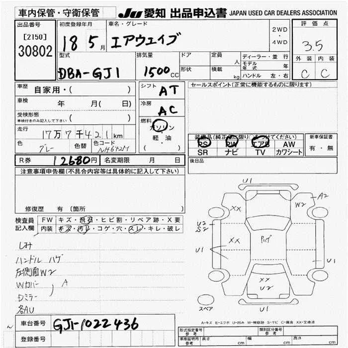 Honda AIRWAVE с аукциона Японии JU Aichi лот № 30802