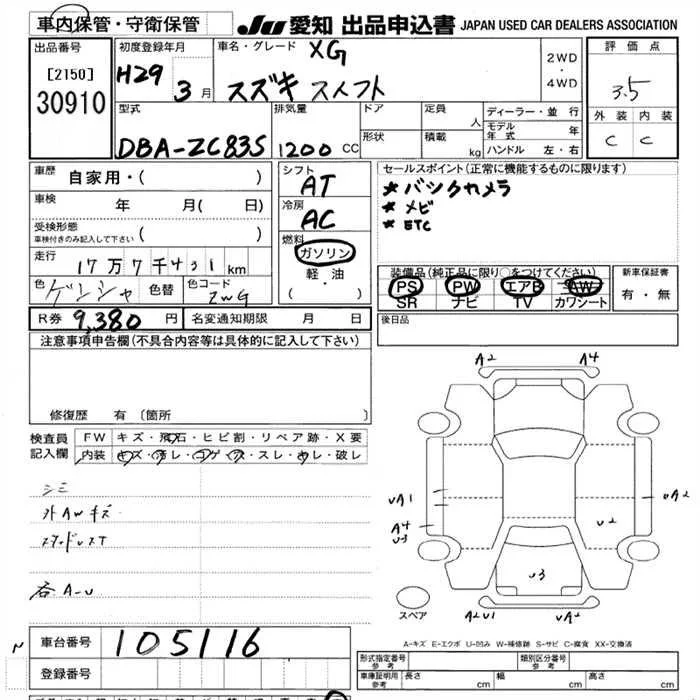 Suzuki SWIFT с аукциона Японии JU Aichi лот № 30910