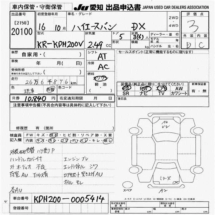 Toyota HIACE VAN с аукциона Японии JU Aichi лот № 20100