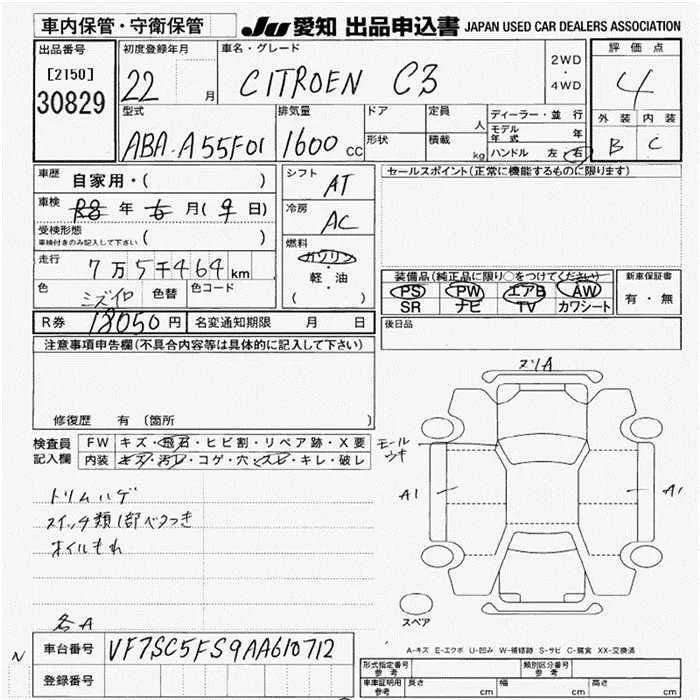 Citroen C3 с аукциона Японии JU Aichi лот № 30829