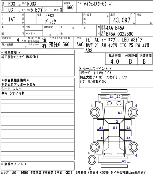 Nissan ROOX с аукциона Японии NAA Nagoya лот № 3009