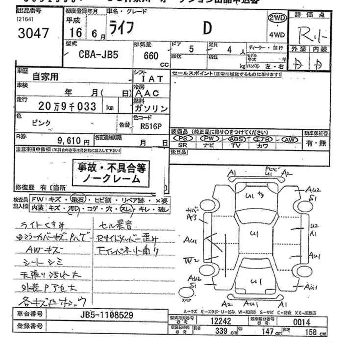 Honda LIFE с аукциона Японии JU Kanagawa лот № 3047