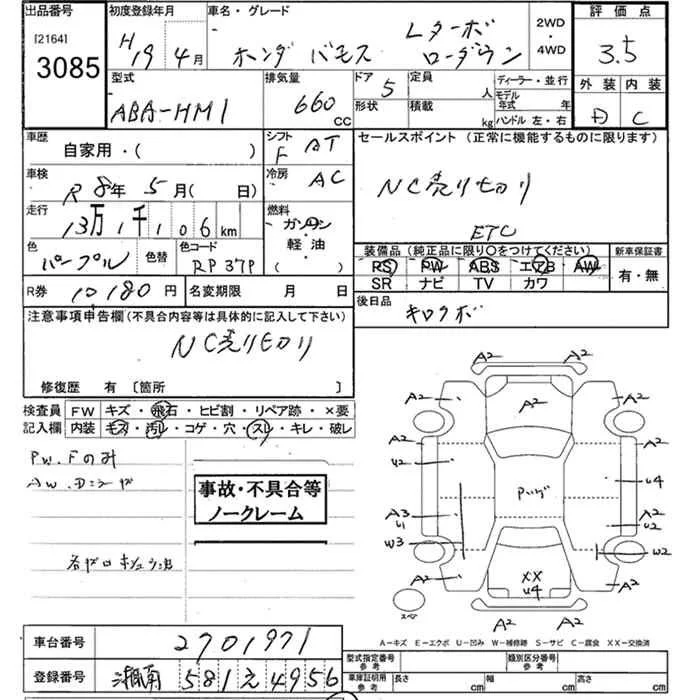 Honda VAMOS с аукциона Японии JU Kanagawa лот № 3085