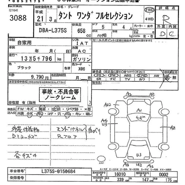 Daihatsu TANTO с аукциона Японии JU Kanagawa лот № 3088