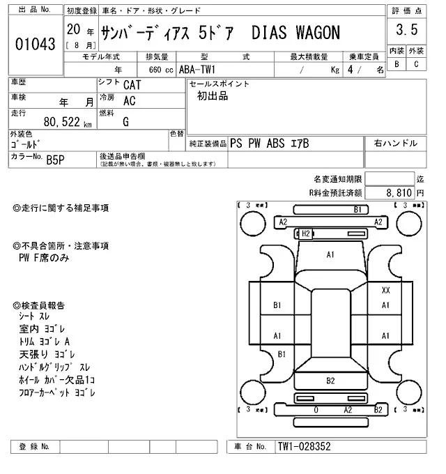 Subaru GOLF ALLTRACK с аукциона Японии ARAI Oyama лот № 1043