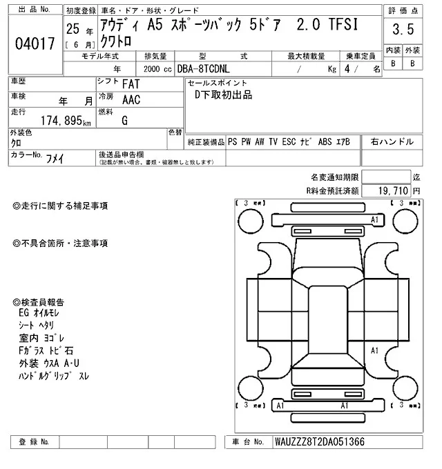 Audi A5 с аукциона Японии ARAI Oyama лот № 4017