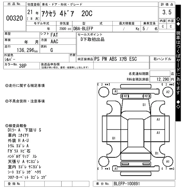 Mazda AXELA с аукциона Японии ARAI Oyama лот № 320