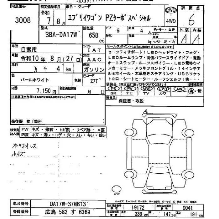 Suzuki EVERY WAGON с аукциона Японии JU Hiroshima лот № 3008