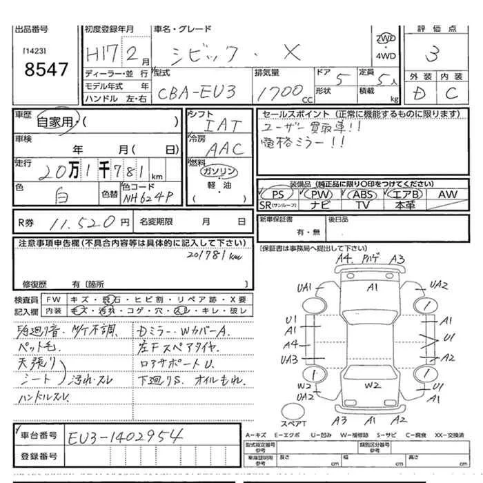 Honda CIVIC с аукциона Японии JU Miyazaki лот № 8547