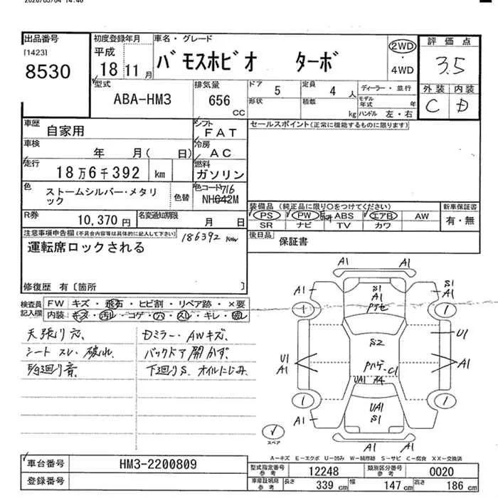 Honda VAMOS с аукциона Японии JU Miyazaki лот № 8530