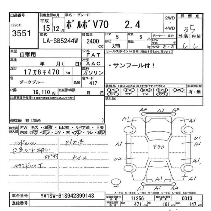 Volvo V70 с аукциона Японии JU Gunma лот № 3551