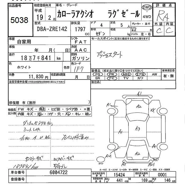 Toyota COROLLA AXIO с аукциона Японии JU Fukushima лот № 5038