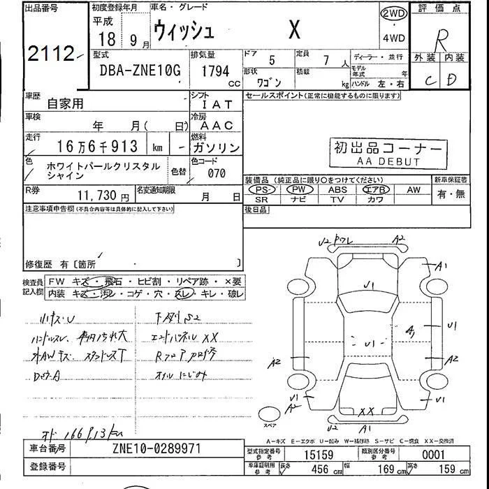 Toyota WISH с аукциона Японии JU Fukushima лот № 2112