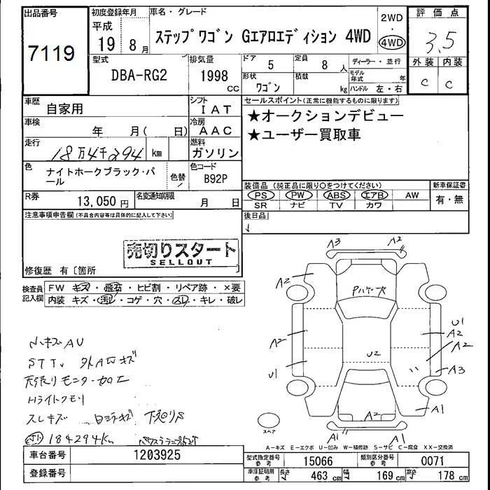 Honda STEP WAGON с аукциона Японии JU Fukushima лот № 7119