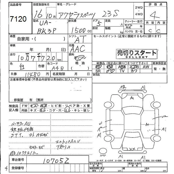 Mazda AXELA с аукциона Японии JU Fukushima лот № 7120