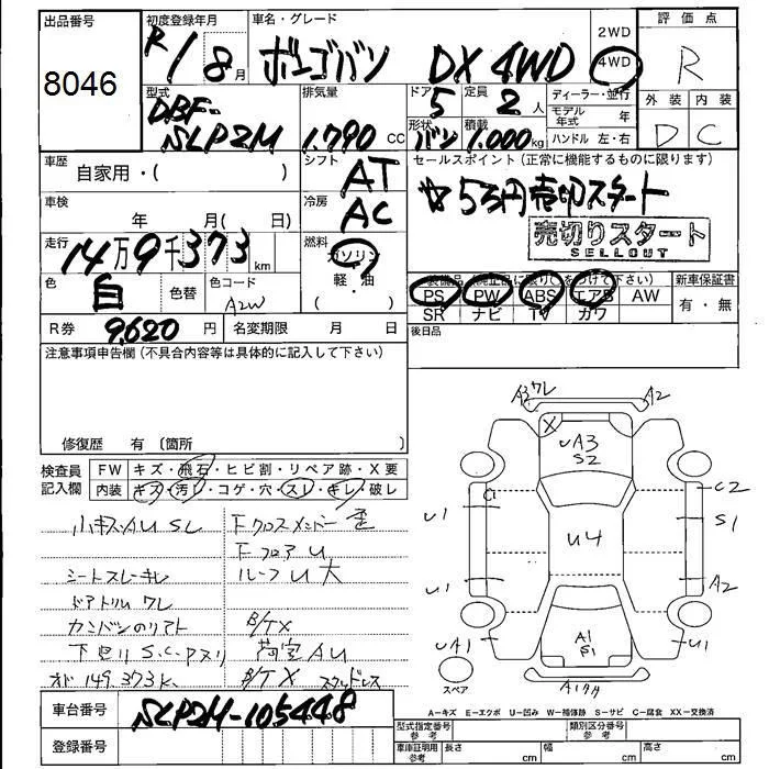 Mazda BONGO VAN с аукциона Японии JU Fukushima лот № 8046