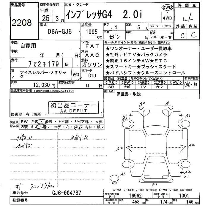 Subaru IMPREZA G4 с аукциона Японии JU Fukushima лот № 2208