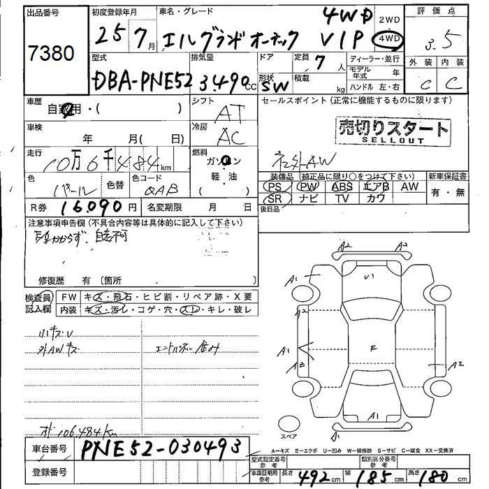 Nissan ELGRAND с аукциона Японии JU Fukushima лот № 7380
