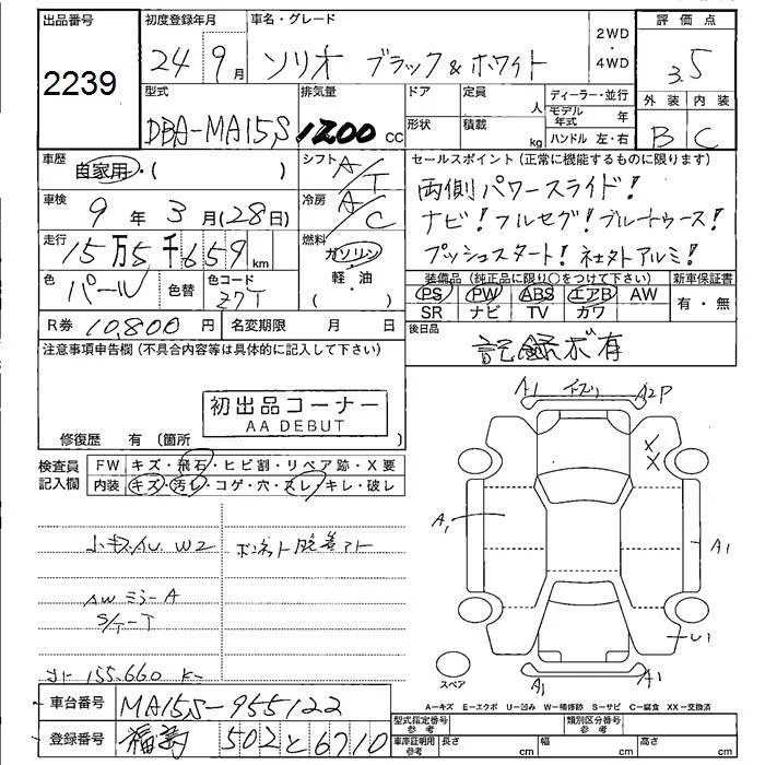 Suzuki SOLIO с аукциона Японии JU Fukushima лот № 2239