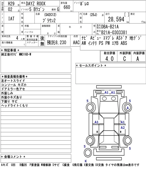 Nissan DAYZ ROOX с аукциона Японии NAA Osaka лот № 3005
