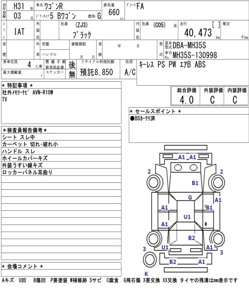Suzuki WAGON R с аукциона Японии NAA Osaka лот № 3084