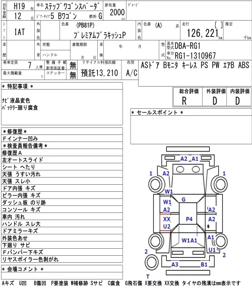 Honda STEP WAGON с аукциона Японии NAA Osaka лот № 5090