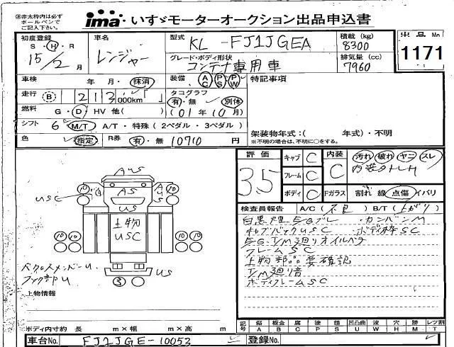 Hino RANGER с аукциона Японии Isuzu Kyushu лот № 1171