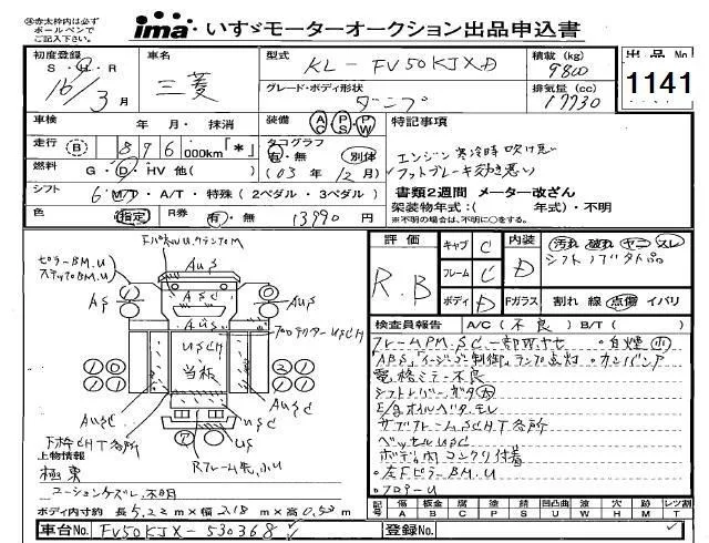 Mitsubishi FUSO TRUCK с аукциона Японии Isuzu Kyushu лот № 1141