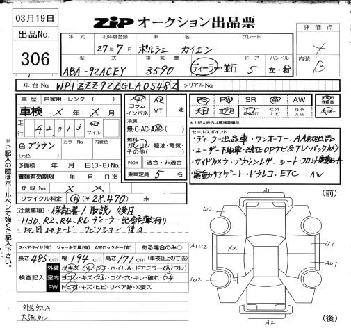 Porsche Cayenne с аукциона Японии ZIP Osaka лот № 306