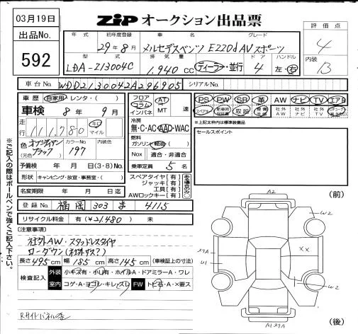 Mercedes-Benz E CLASS с аукциона Японии ZIP Osaka лот № 592