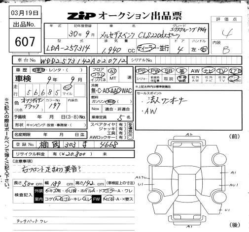 Mercedes-Benz CLS с аукциона Японии ZIP Osaka лот № 607