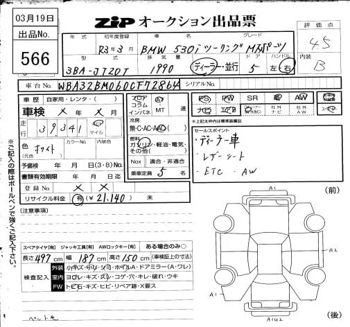 BMW 5-Series с аукциона Японии ZIP Osaka лот № 566