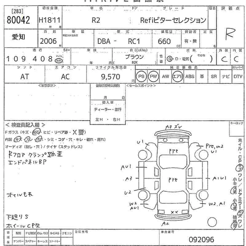 Subaru R2 с аукциона Японии MIRIVE Aichi лот № 80042
