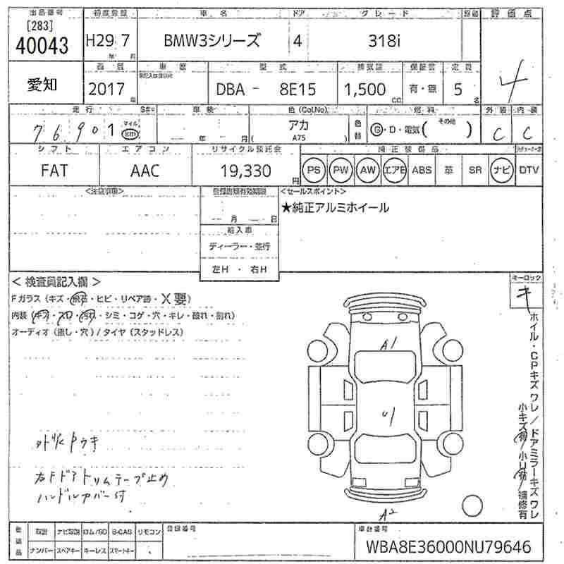 BMW 3-Series с аукциона Японии MIRIVE Aichi лот № 40043