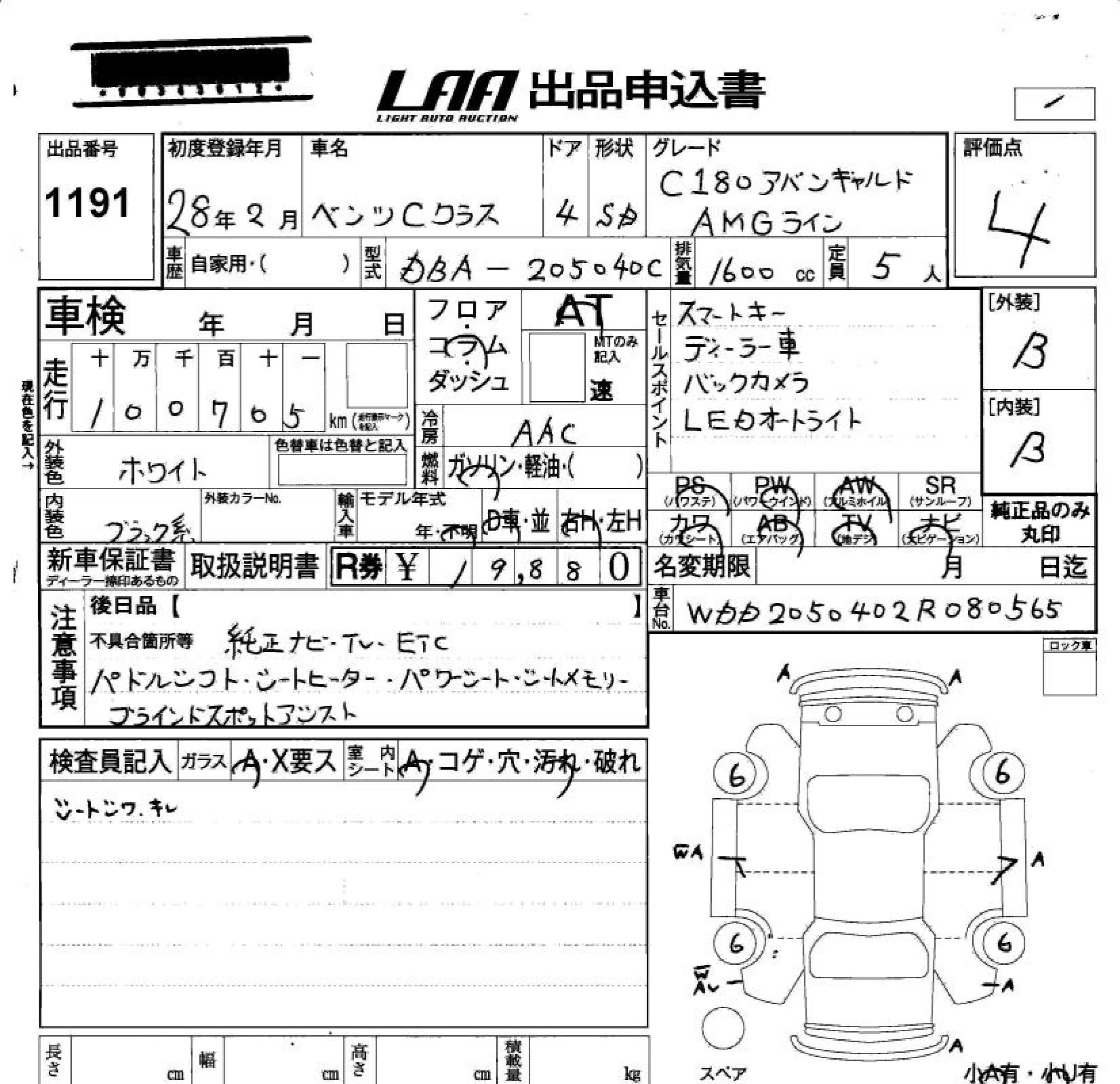 Mercedes-Benz C CLASS с аукциона Японии LAA Okayama лот № 1191
