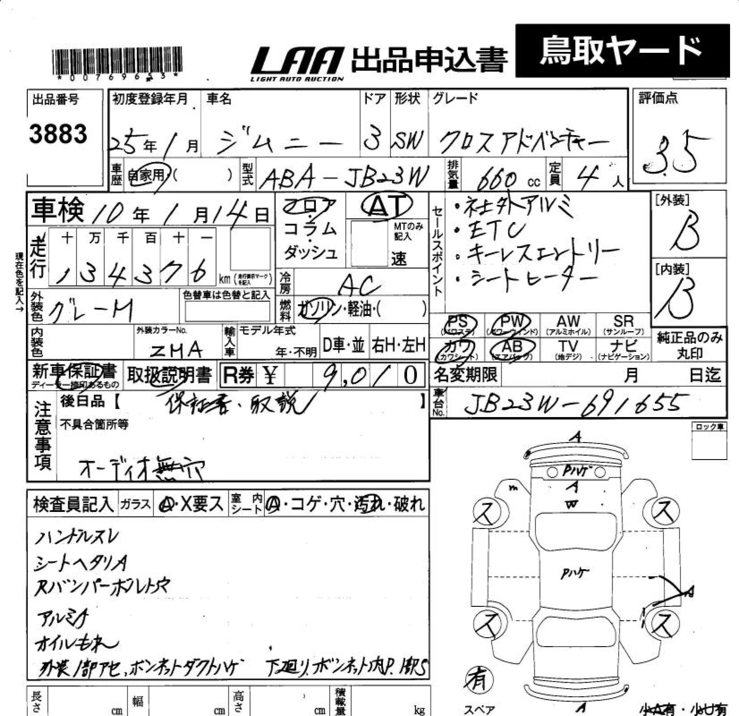 Suzuki JIMNY с аукциона Японии LAA Okayama лот № 3883