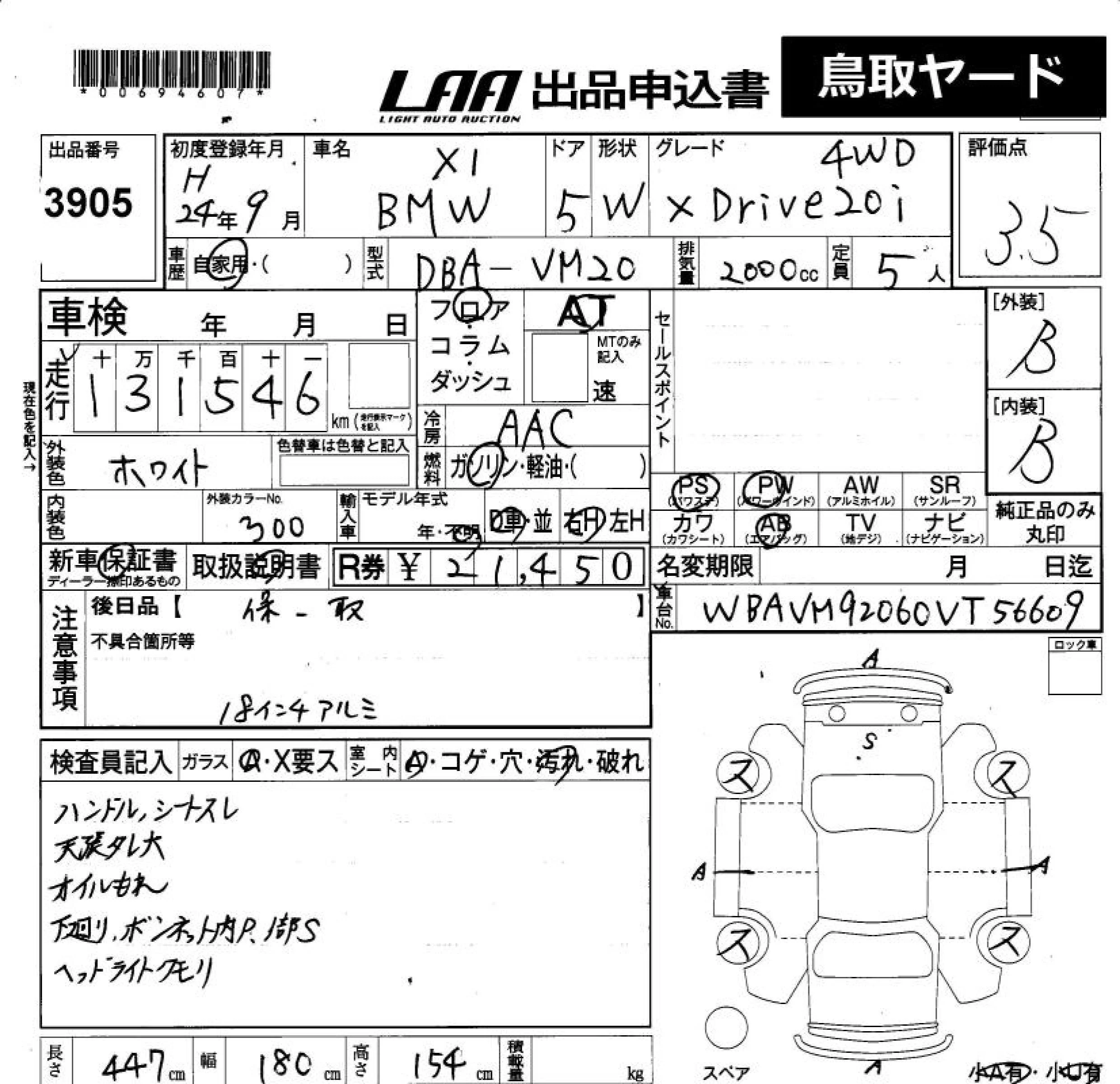 BMW X1 с аукциона Японии LAA Okayama лот № 3905