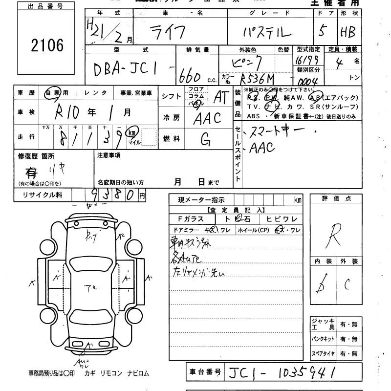 Honda LIFE с аукциона Японии KCAA Yamaguchi лот № 2106