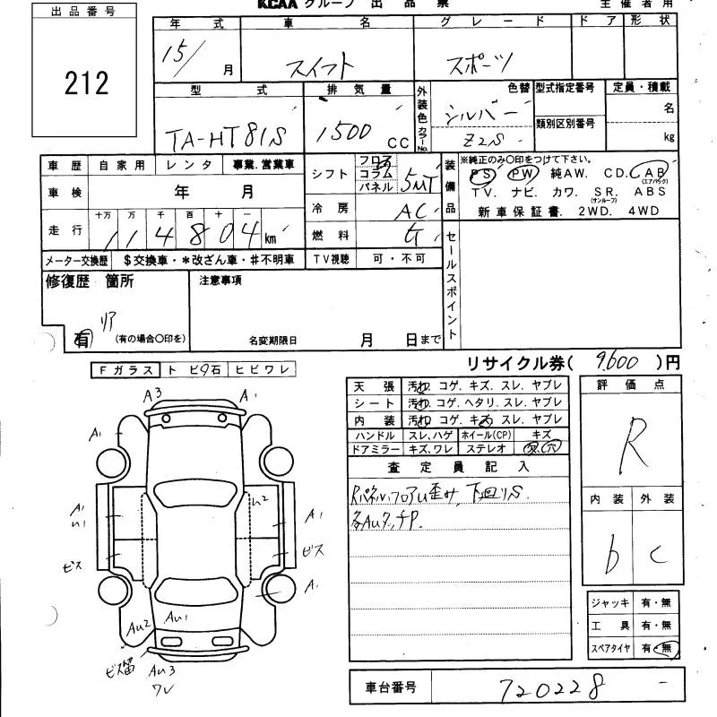 Suzuki SWIFT с аукциона Японии KCAA Yamaguchi лот № 212