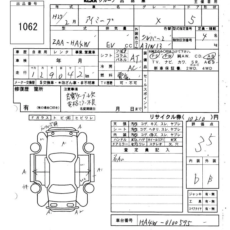 Mitsubishi I-MIEV с аукциона Японии KCAA Yamaguchi лот № 1062