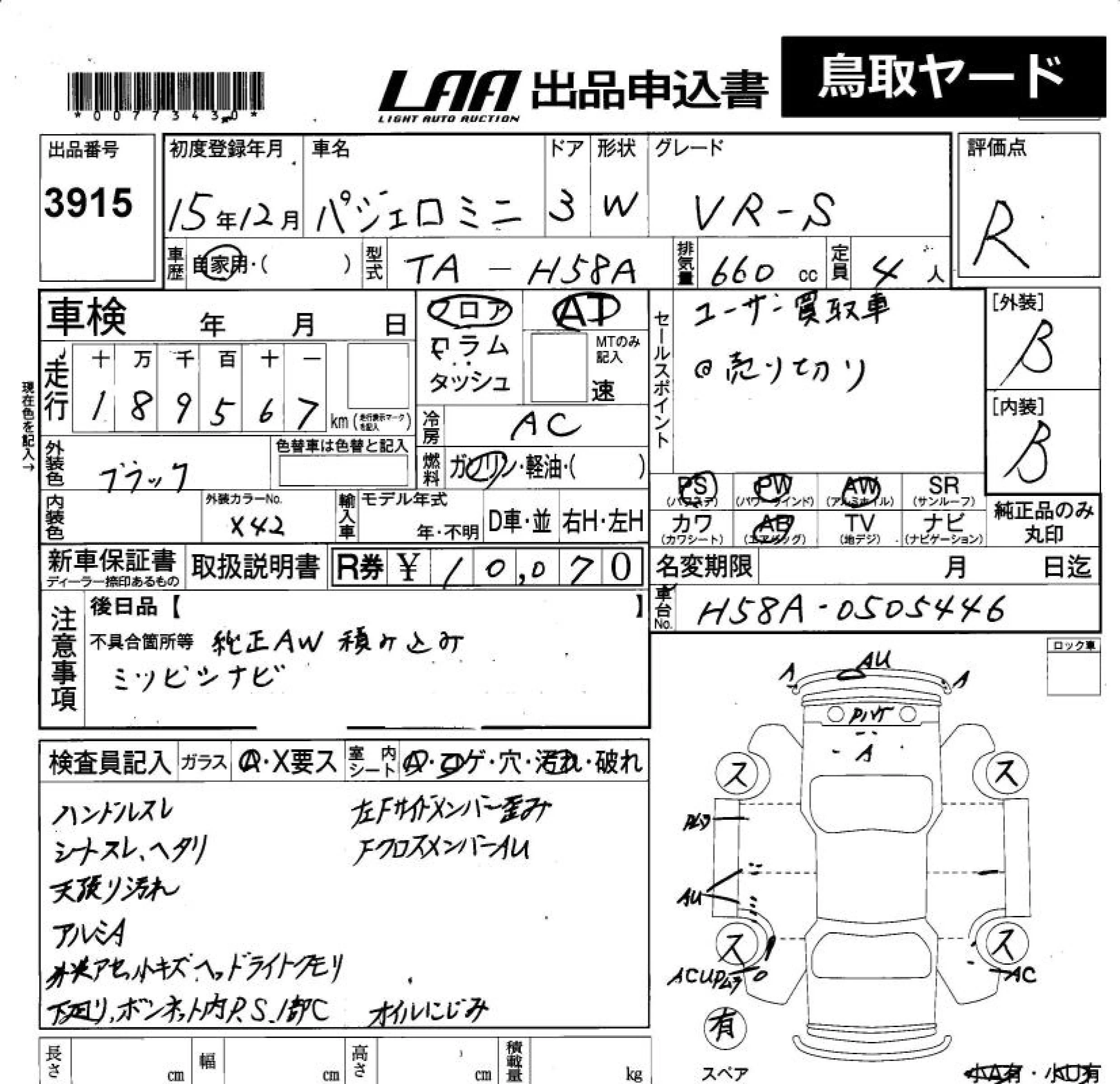Mitsubishi PAJERO MINI с аукциона Японии LAA Okayama лот № 3915